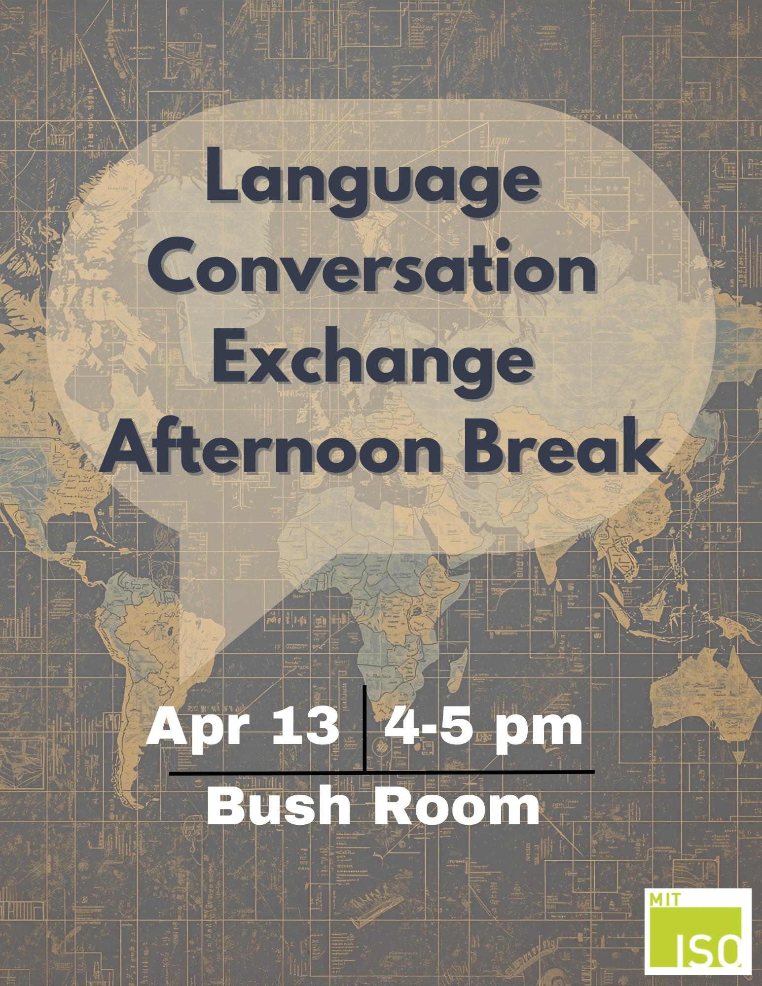 10-105, Bush room Tea and snacks servedCome meet fellow language learners! You are encouraged to make connections in order to form your own small language conversation groups.Sponsored by the MIT […]
